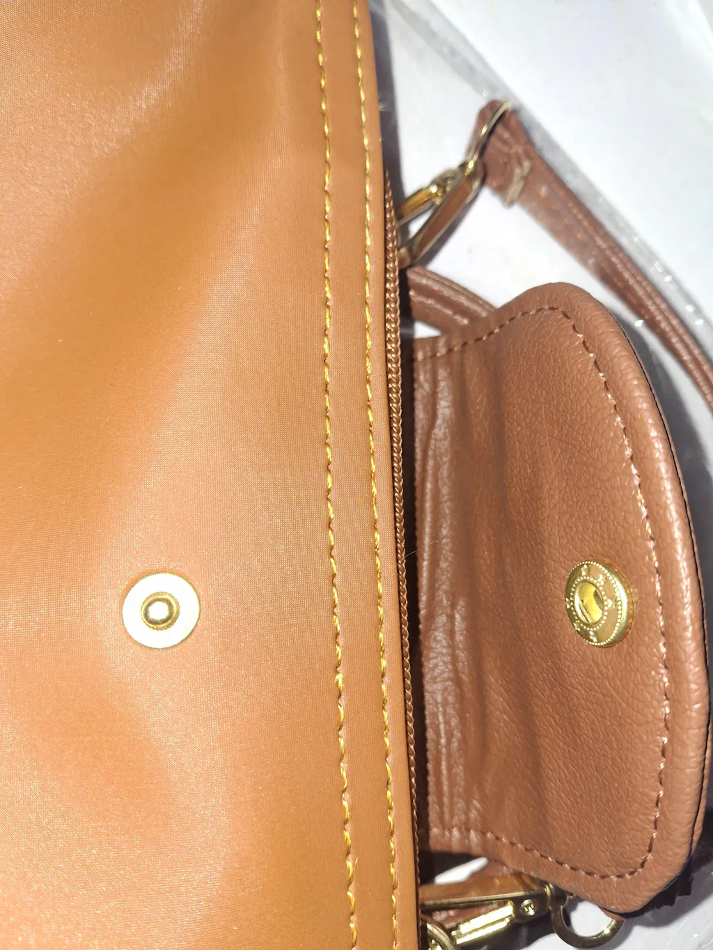 The bag is fine and exactly as shown in the picture. However, the front magnatic button is weak and comes undone easily, so it’s not very useful.